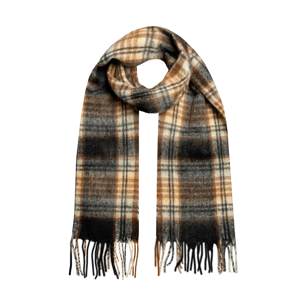 Dents Men's Walnut With Tassel Ends Trad Check Blanket 2-2374 Scarf