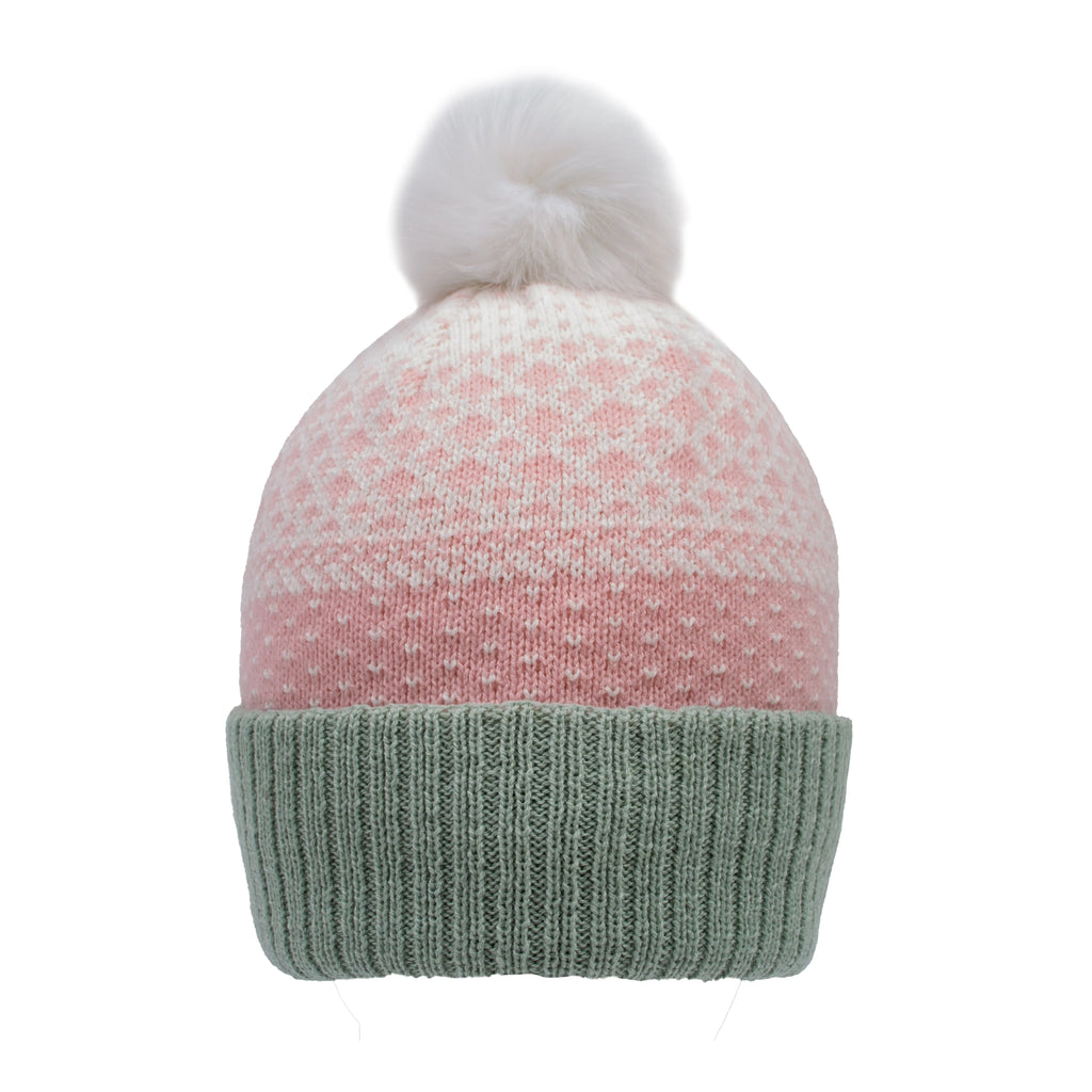 Dents 3 Colour Fair Isle Knitted Hat 3-3322 Powder Pink/Mint