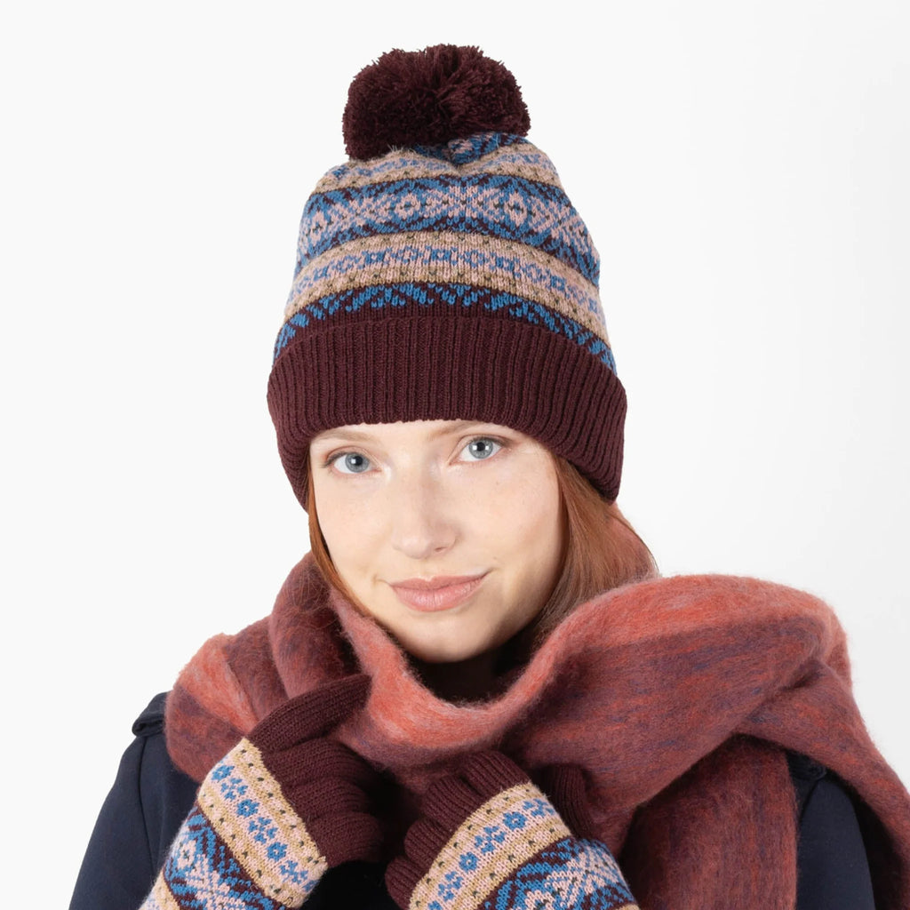 Dents 5 Colour Fair Isle Knitted Hat 3-3321 Damson