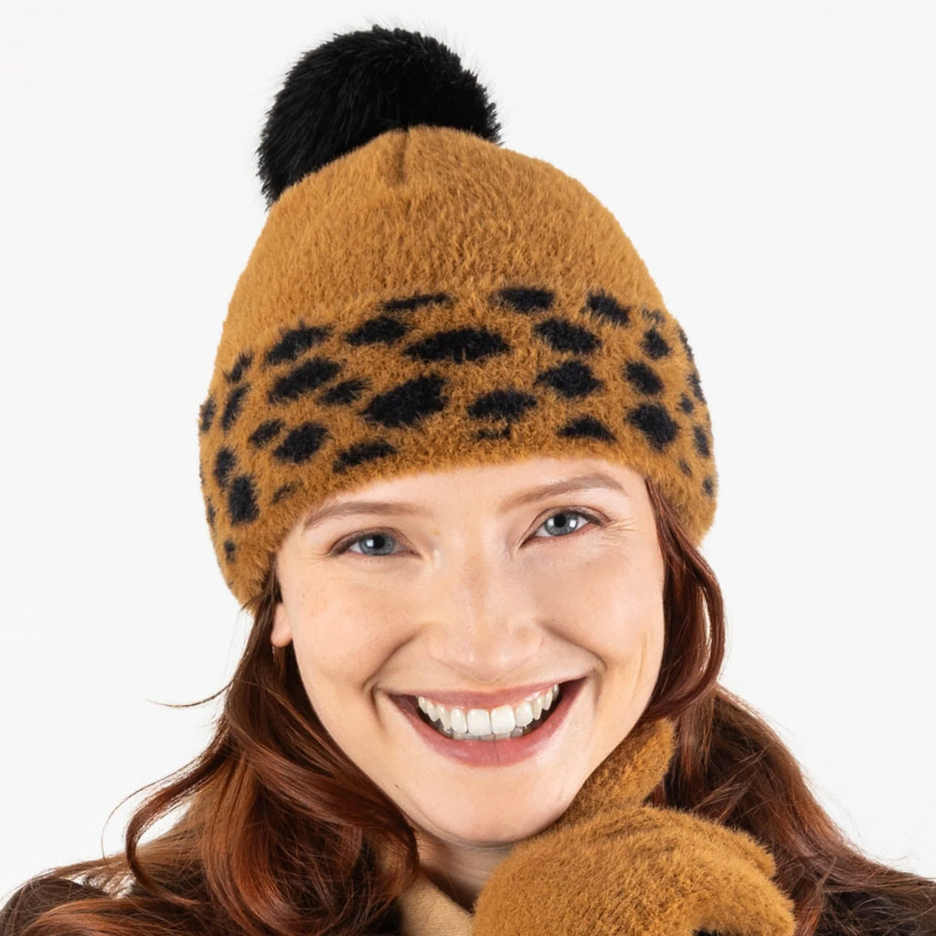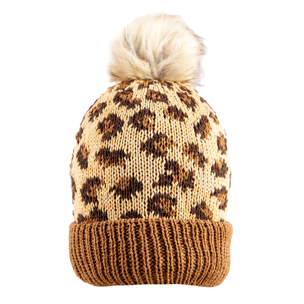 Dents Animal Print Hat with Ribbed Turn Back Brim 3-3314 Tan