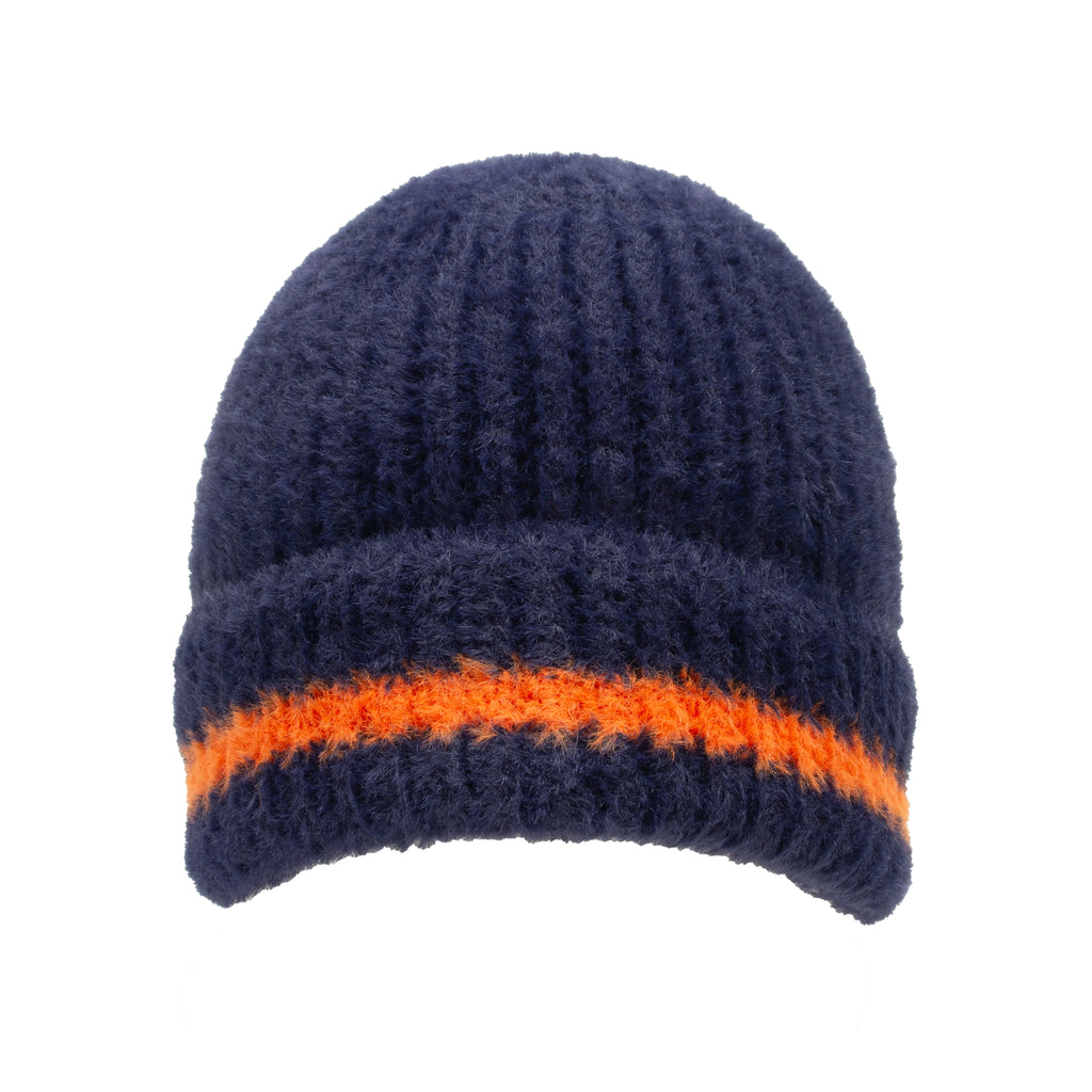 Dents Feather Yarn Knitted Hat 3-3318 Navy/Pumpkin