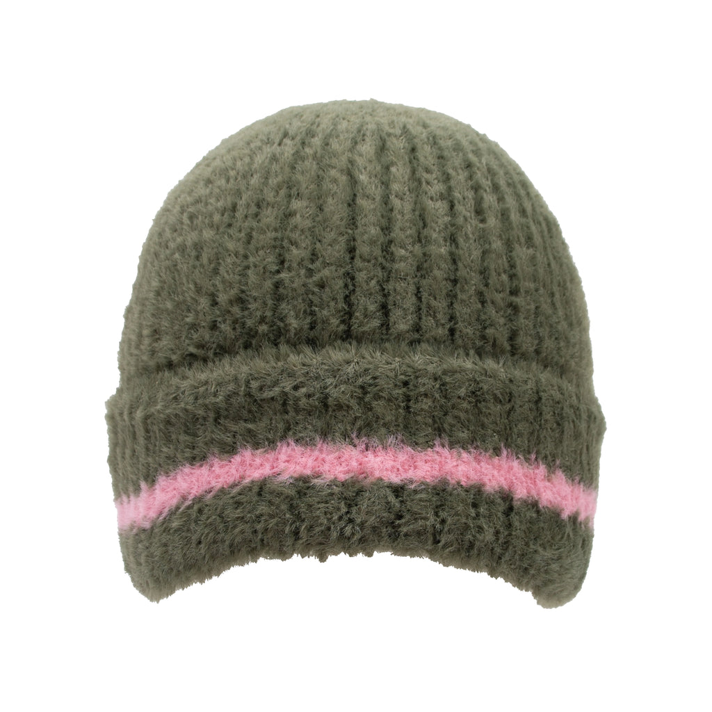 Dents Feather Yarn Knitted Hat 3-3318 Olive/Pink