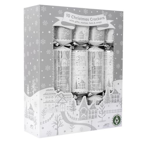 Christmas Crackers 10 Family Silver Houses 12" RSW XM7030