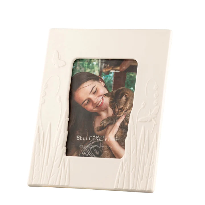 Display your memories in our Belleek Botanical Frame 8x10, inspired by the flora and fauna of Lough Erne. Hand painted inscriptions available for a personalized touch. Made with Parian and Perspex for a delicate yet durable frame. Create a beautiful and unique display for your photos.