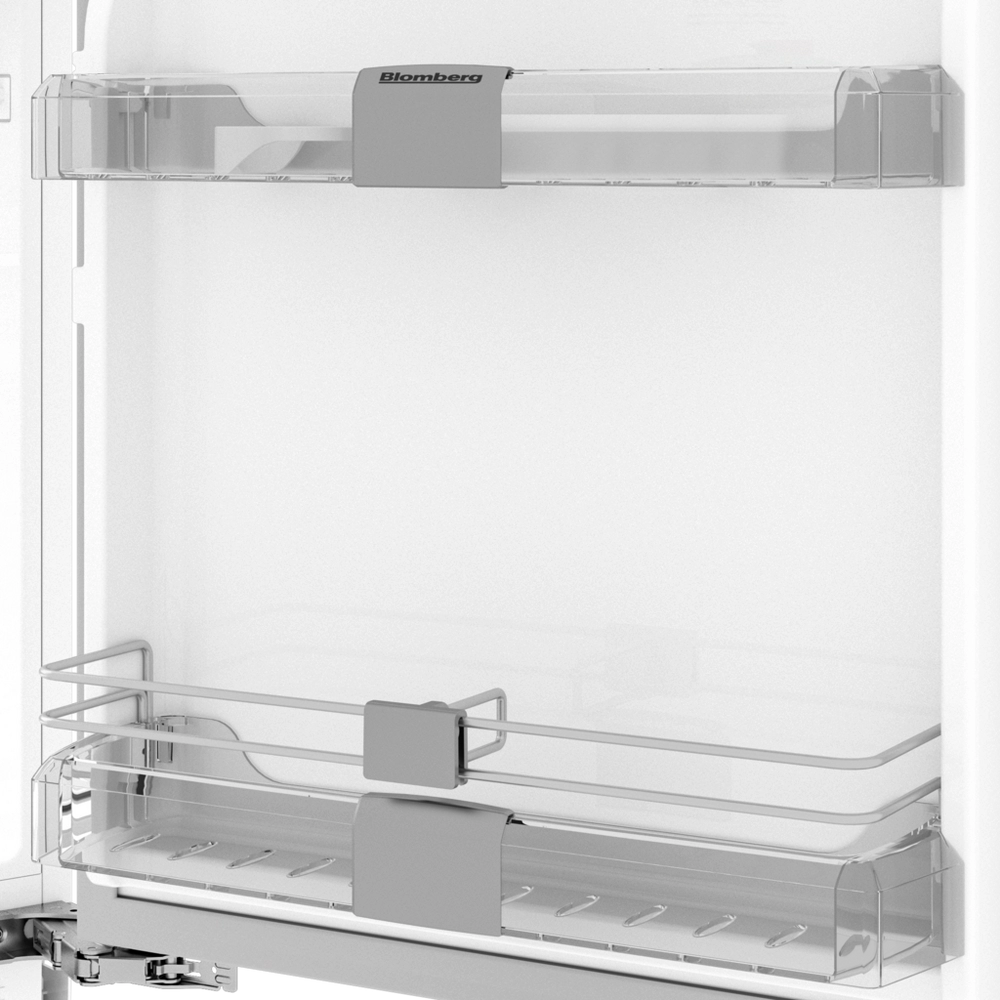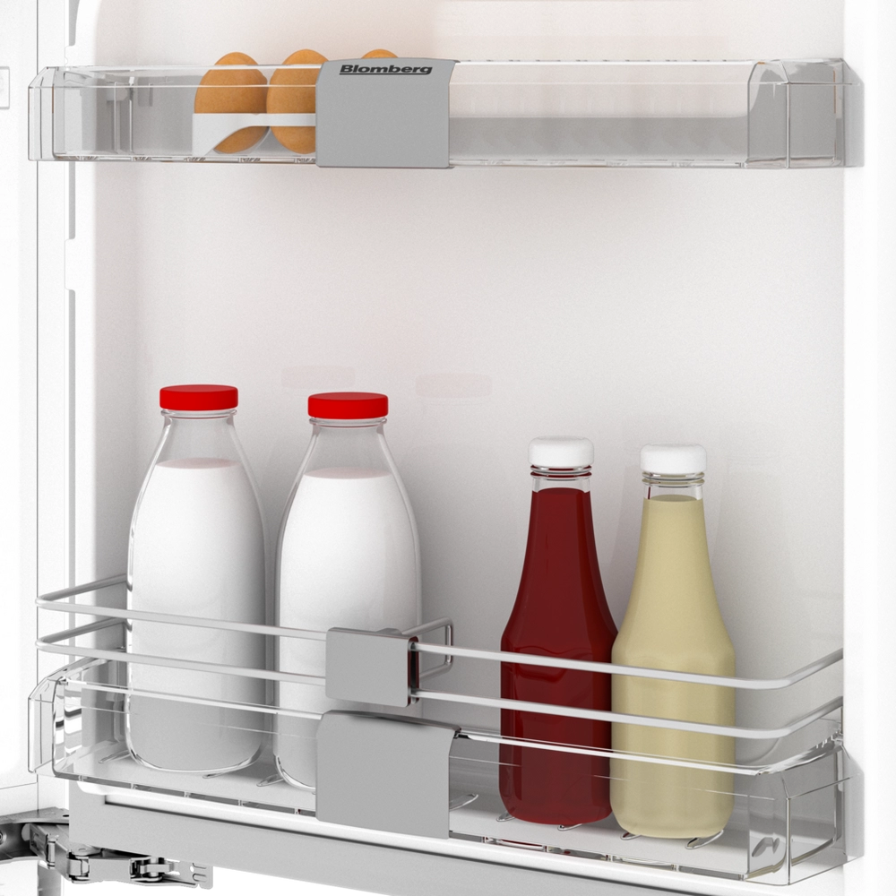 Discover the Blomberg integrated larder fridge designed to optimise your kitchen storage. It includes three shelves—two adjustable—and two door balconies, giving you ample room to organise your groceries exactly how you prefer. The salad crisper at the base keeps your fruits and vegetables fresh and crisp, featuring a roll-out shelf for effortless access and to maintain freshness. Bright LED lighting ensures you can quickly find everything you need. The TSM1654IU is the perfect combination of practical storage and convenience for your kitchen.