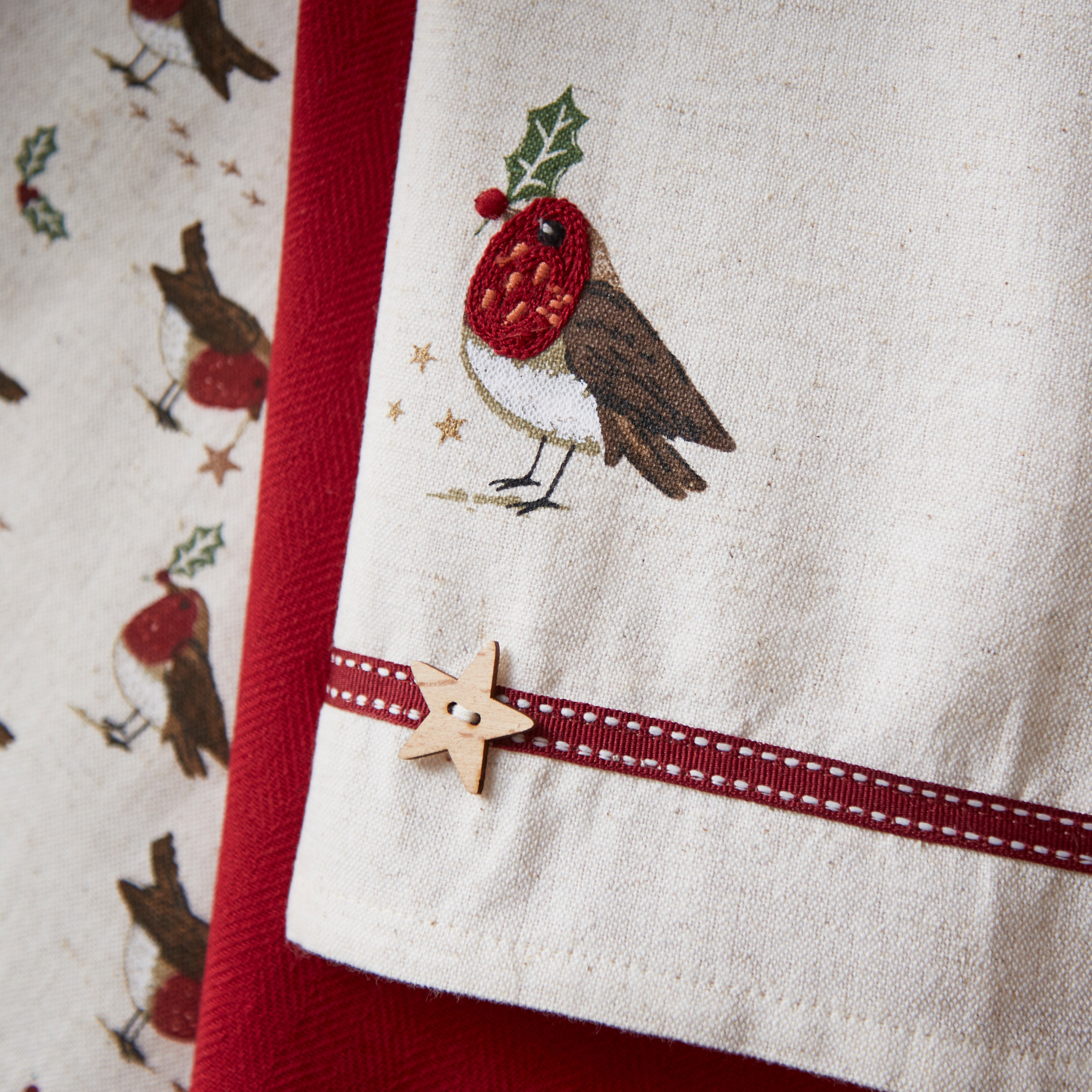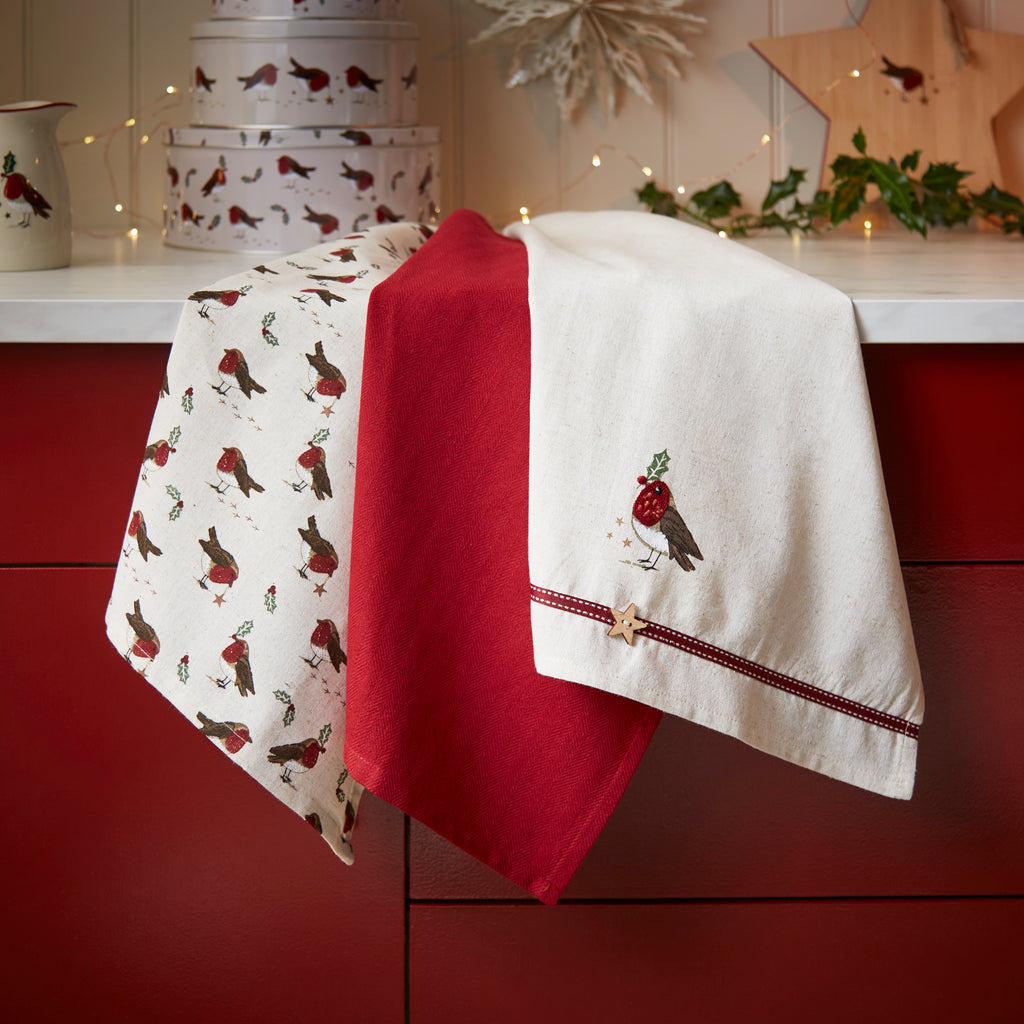 Elevate your kitchen with the Cooksmart Robins Retreat 3pc Tea Towels, designed to combine style and practicality. Featuring charming robin illustrations, these towels bring a touch of nature’s beauty to your daily routine. Crafted from high-quality, absorbent fabric, they ensure quick drying and durability, making them perfect for all your kitchen tasks. Whether drying dishes, wiping surfaces, or protecting your hands, these towels add a cosy, inviting atmosphere while providing reliable performance. Refresh your home with these delightful tea towels that blend aesthetic appeal with everyday functionality.