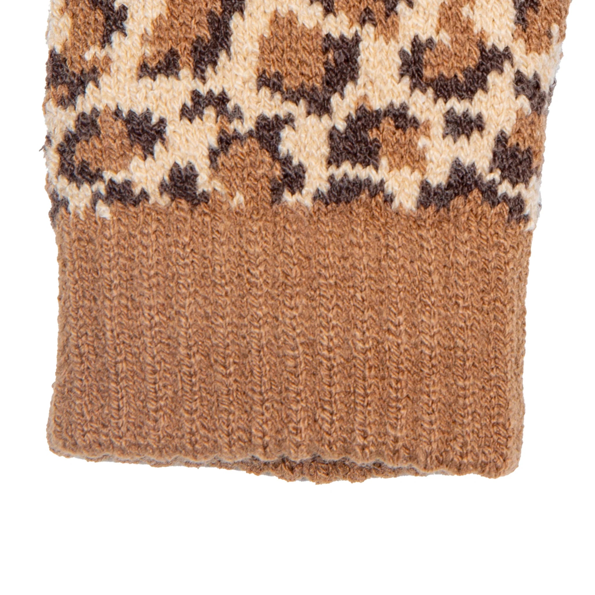 Embrace vintage glamour this winter with the Dents Animal Print Ladies Glove 6-3239 in tan. Featuring a bold leopard print, these knitted gloves combine stylish flair with practical warmth. The stretchy knit ensures a comfortable fit, while the signature fluffy yarn lining adds luxurious cosiness against cold weather. With a ribbed cuff just above the wrist, these gloves lock in heat without restricting movement, making them the perfect accessory to showcase your wild side in chilly seasons.