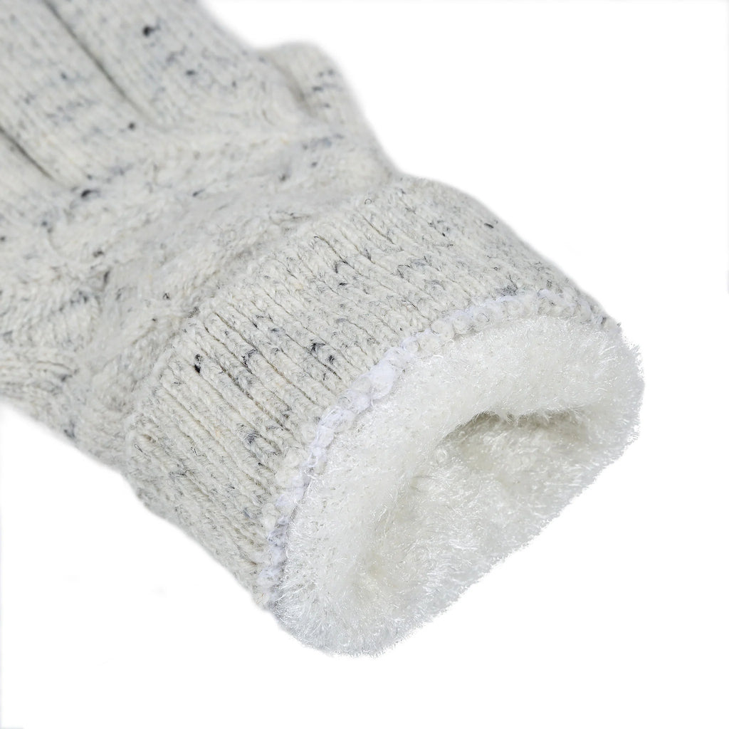 Elevate your winter style with these Lace Knit Gloves, crafted from a soft wool-blend marl yarn for warmth and comfort. Featuring delicate lace knit detailing on the back, they add a subtle feminine touch to your cold-weather wardrobe. Fully lined with feather-soft yarn and finished with ribbed cuffs, these gloves ensure a cosy fit that locks in heat and keeps out the chill. Perfect for those who want elegance without sacrificing warmth.