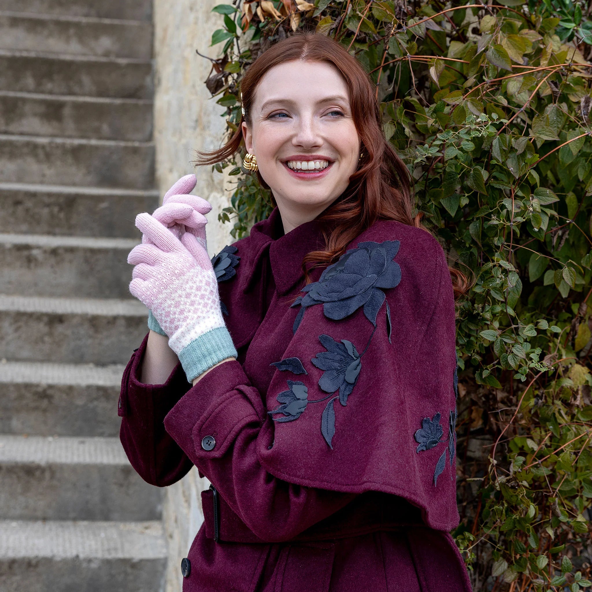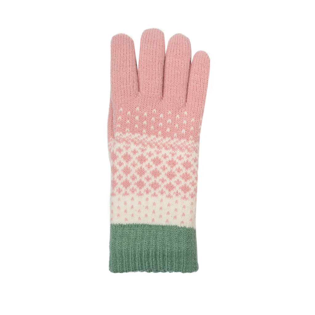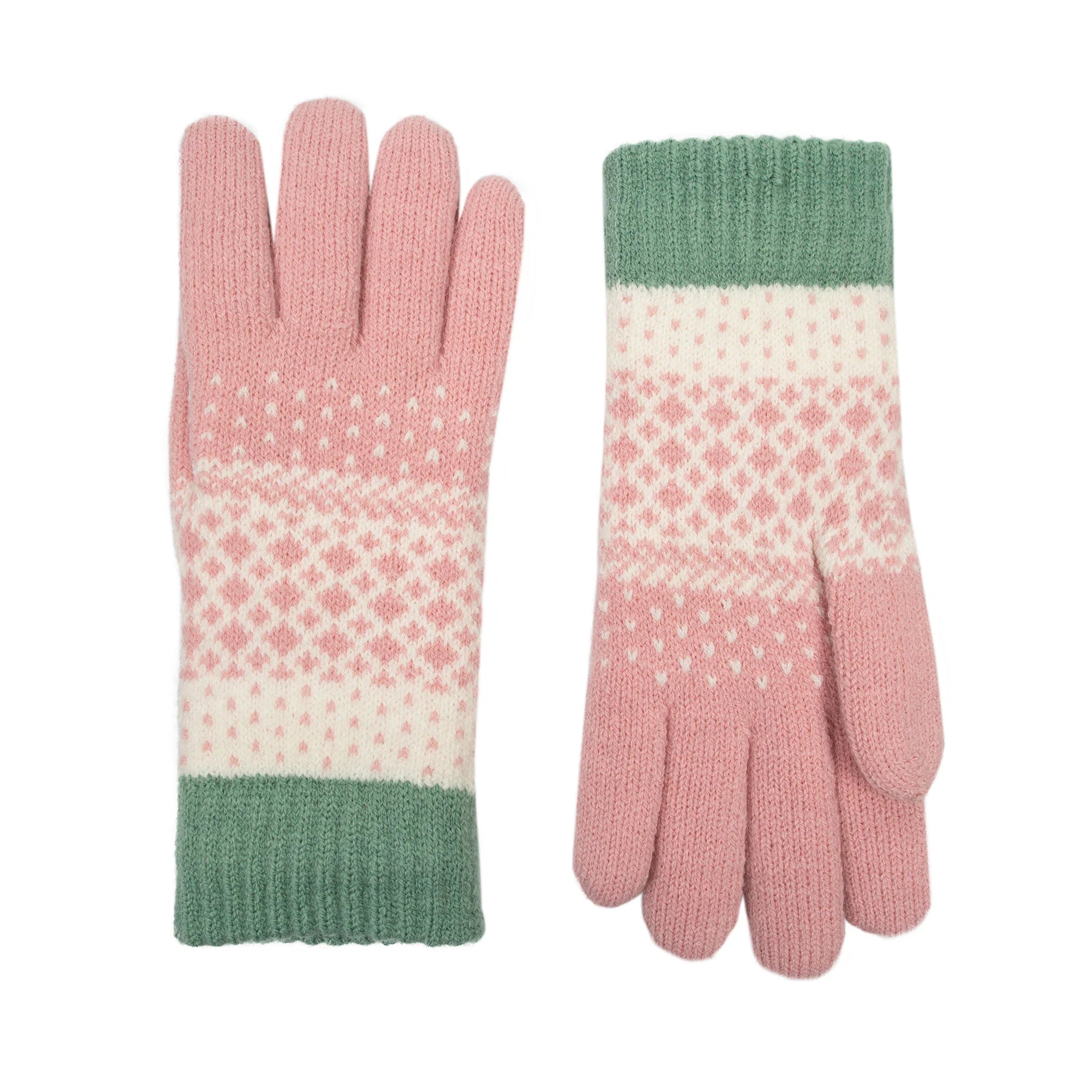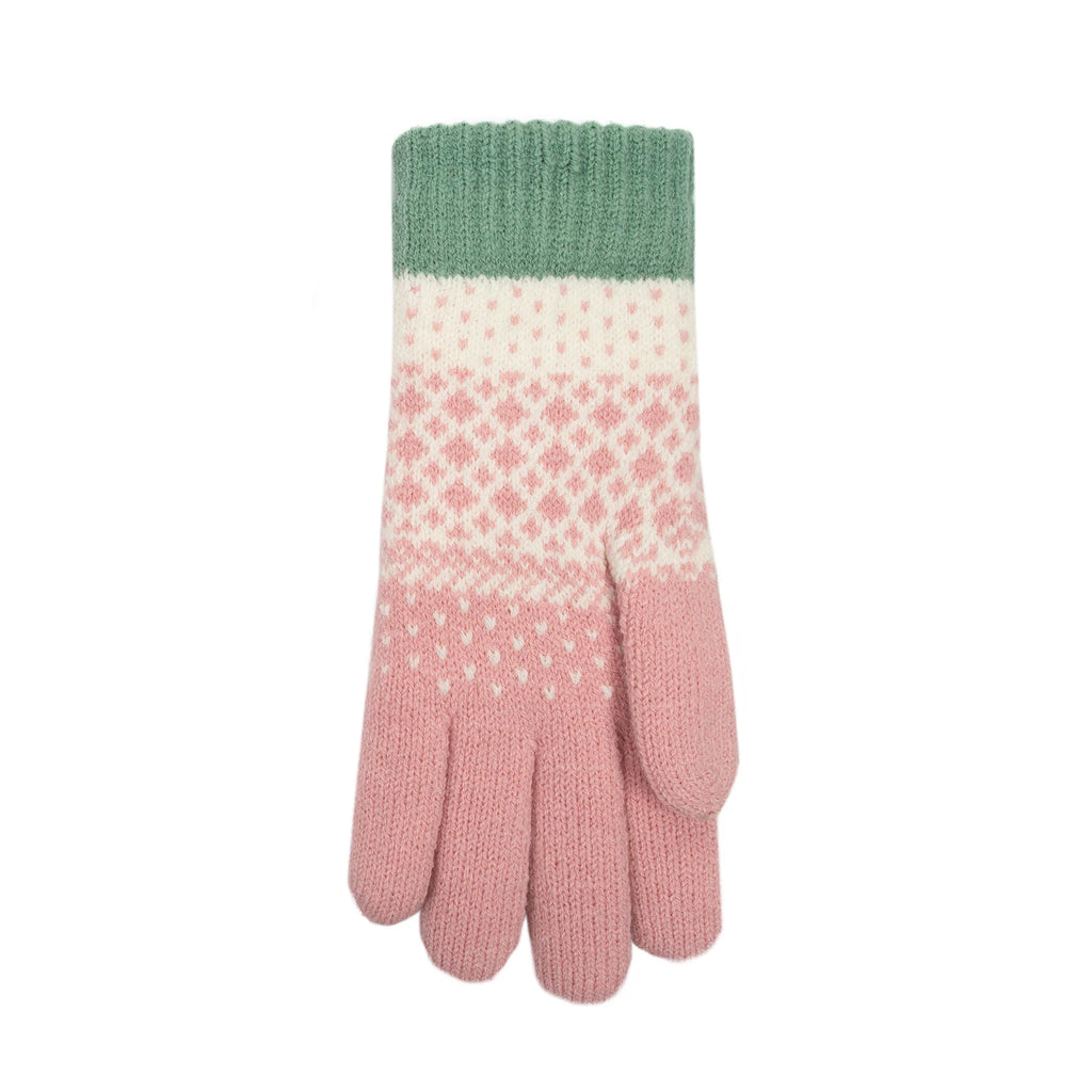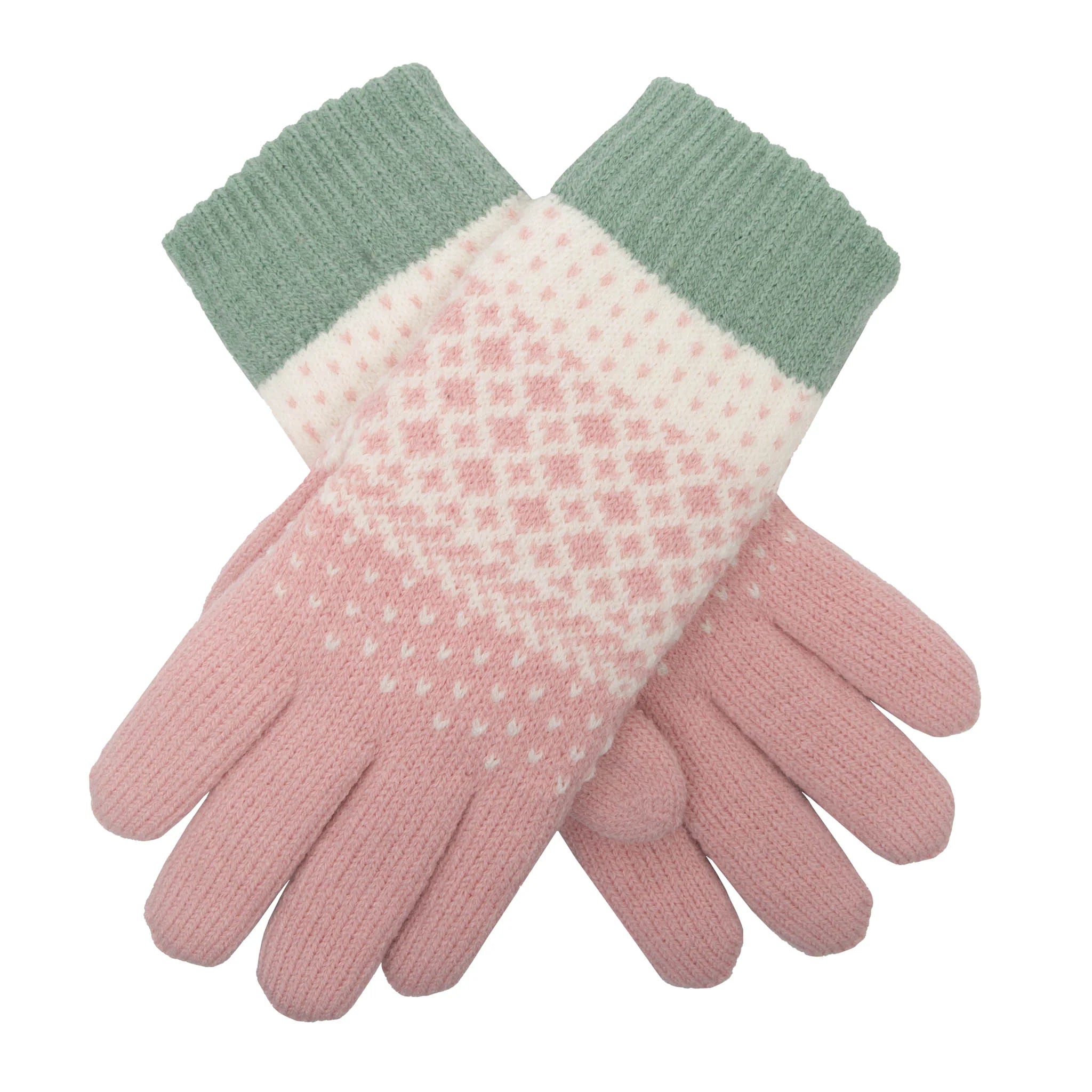 Dents Knitted Glove With Ditsy Heart Fair Isle Design 6-3298 Powder Pink/Mint