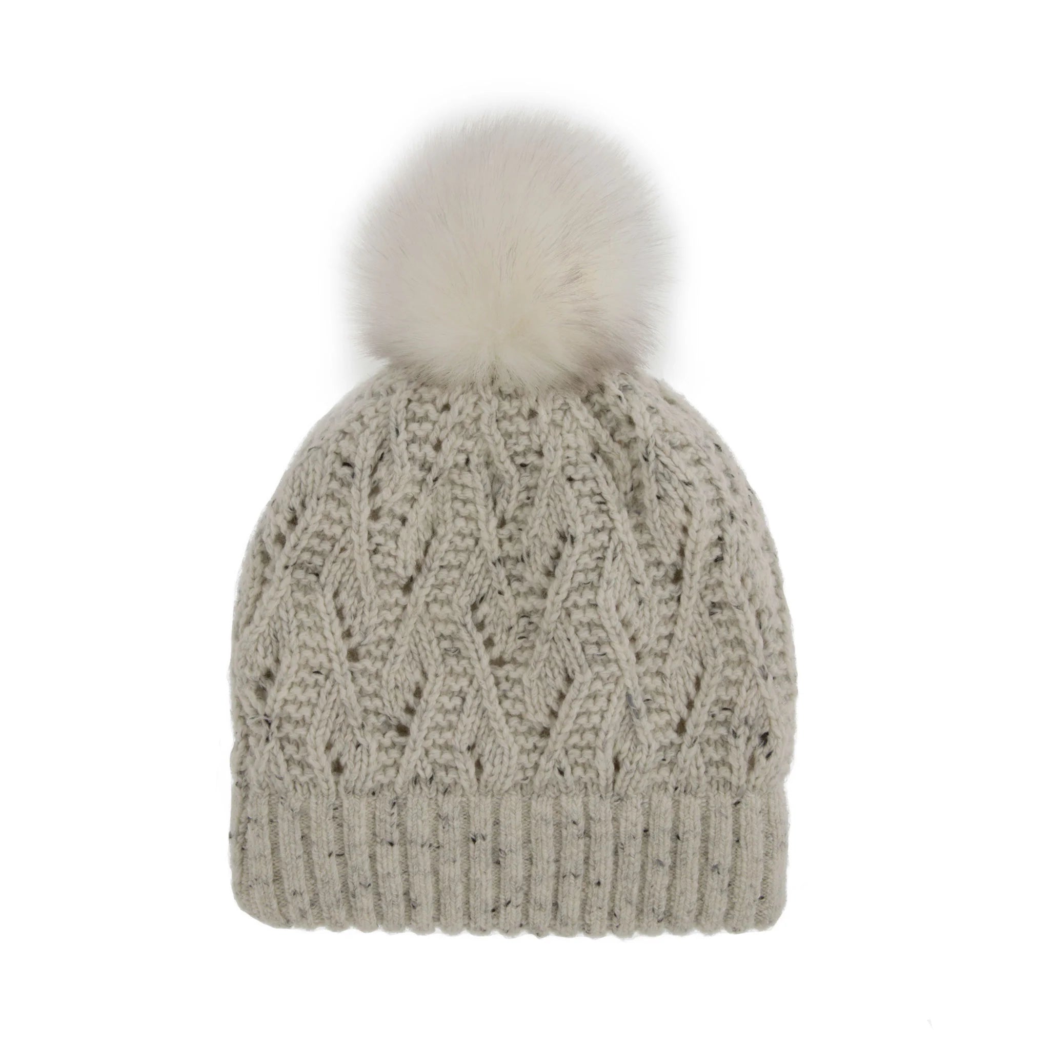 Stay cosy and chic with the Dents Knitted Hat Lace in White. Crafted from flecked marl yarn, its delicate lace pattern offers elegant detail, while the chunky knit provides exceptional warmth. Inside, a feather-soft lining ensures comfort, and the ribbed brim guarantees a snug fit. Finished with a playful faux fur pom pom, this hat adds a stylish touch to any winter outfit.