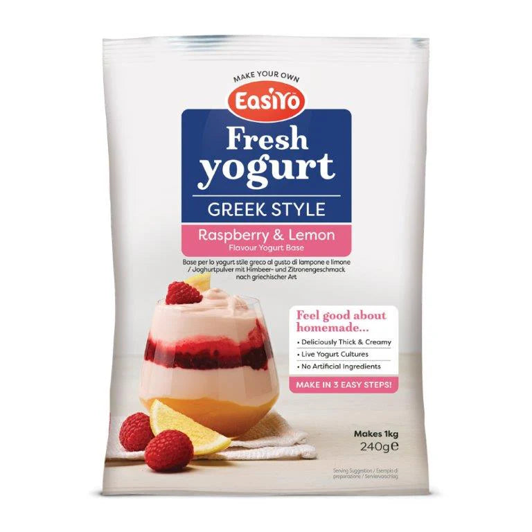 Indulge in the perfect balance of sweet raspberry and zesty lemon with our Easiyo Greek Style Yogurt. This luxuriously thick and creamy creation delivers over a billion live active cultures per serving, including beneficial Acidophilus, to support your digestive wellness. Crafted without preservatives or artificial ingredients, it's naturally gluten-free and vegetarian-friendly. Enjoy it straight from the pot for pure indulgence, or elevate your experience with your favourite toppings and recipes. Make every day feel special with a yogurt that's as nourishing as it is delicious.