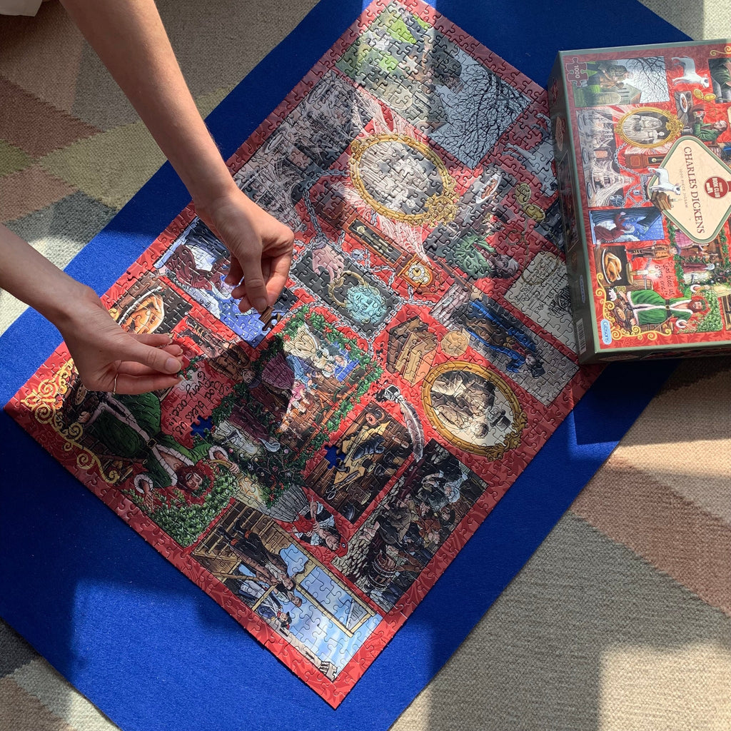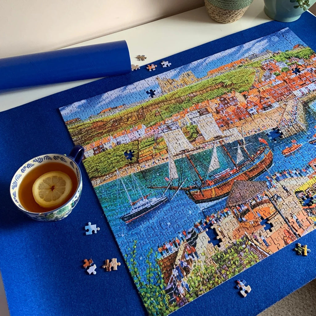 Keep your puzzle projects organized and protected with the Gibson Jigsaw Puzzle Roll. This innovative mat accommodates puzzles up to 1000 pieces and rolls up compactly for hassle-free transport. The sturdy cardboard drum prevents creasing while doubling as secure storage for loose pieces. Elastic and velcro bands lock everything in place, so your work stays intact whether you're moving between rooms or taking your puzzle on holiday. The perfect solution for puzzle enthusiasts who refuse to compromise on convenience or quality.