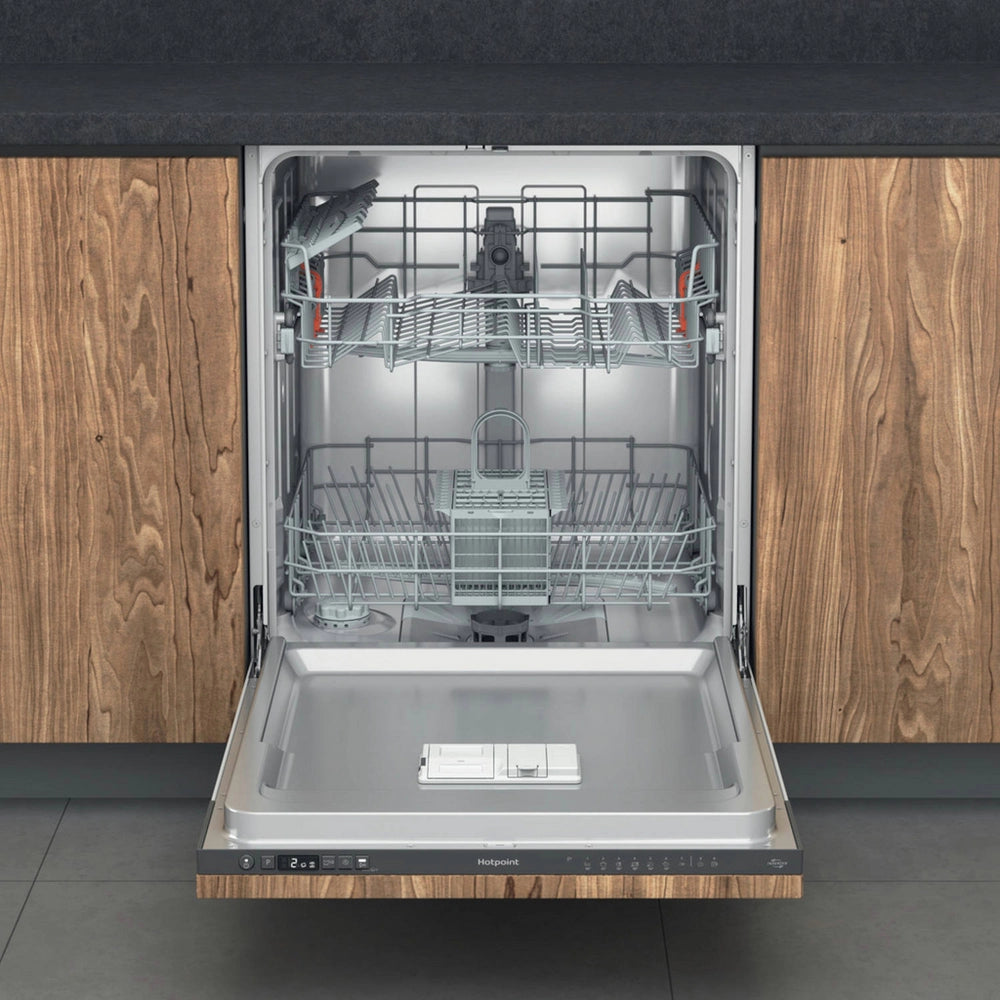 The Hotpoint H2IHKD526UK seamlessly integrates into your kitchen whilst delivering exceptional performance for discerning households. Accommodating 14 place settings, this full-size dishwasher handles substantial loads with ease, ideal for entertaining or larger families. The innovative Rapid 30 programme tackles lightly soiled items in just half an hour, whilst nine specialised wash cycles—from gentle glassware care to intensive pot cleaning—ensure every load receives precisely calibrated treatment. Engineered for both efficiency and versatility, this integrated model elevates your daily kitchen routine.