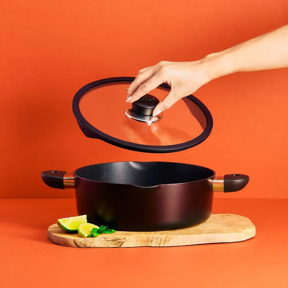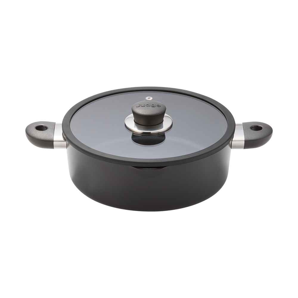 Master versatility with the Judge JV25 Vista Ceramic 24cm Shallow Casserole. This 2.5L workhorse handles casseroles, braises, sautés, and transitions seamlessly from stovetop to table. Built from forged aluminium with a premium ceramic non-stick coating, it delivers effortless food release and minimal clean-up. The matte black finish adds contemporary style to any kitchen. Best of all, it's 100% PFAS-free, giving you safe, high-performance cooking without compromise. One pan, countless meals.