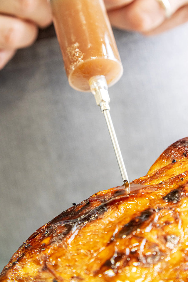 Transform your roasts into flavour-packed masterpieces with the KitchenCraft Cooking Syringe. This versatile meat injector delivers marinades and seasonings directly into meat fibres, ensuring flavour penetrates every bite—unlike surface marinades that wash away during cooking. Perfect for Christmas turkey, Sunday roasts, and poultry, it also works brilliantly for injecting fillings into doughnuts and cupcakes. One ingenious tool, endless culinary possibilities. Elevate your cooking today.