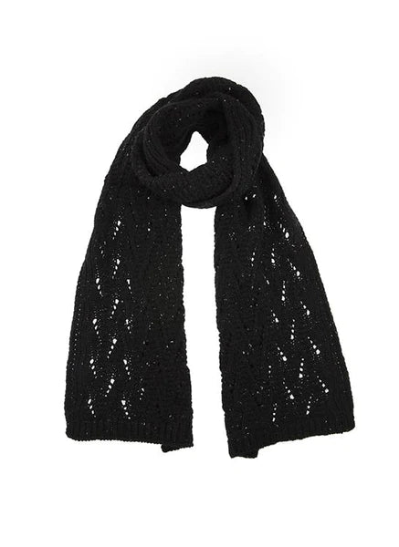 Knitted Scarf with Marl Yarn Black comprises 50% acrylic, 30% wool, and 20% nylon. It features an unlined construction measuring 25cm x 165cm.