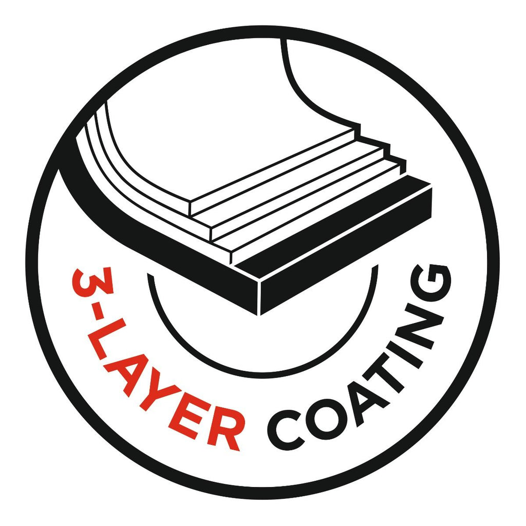 - 3 layer non-stick toughened with titanium particles.