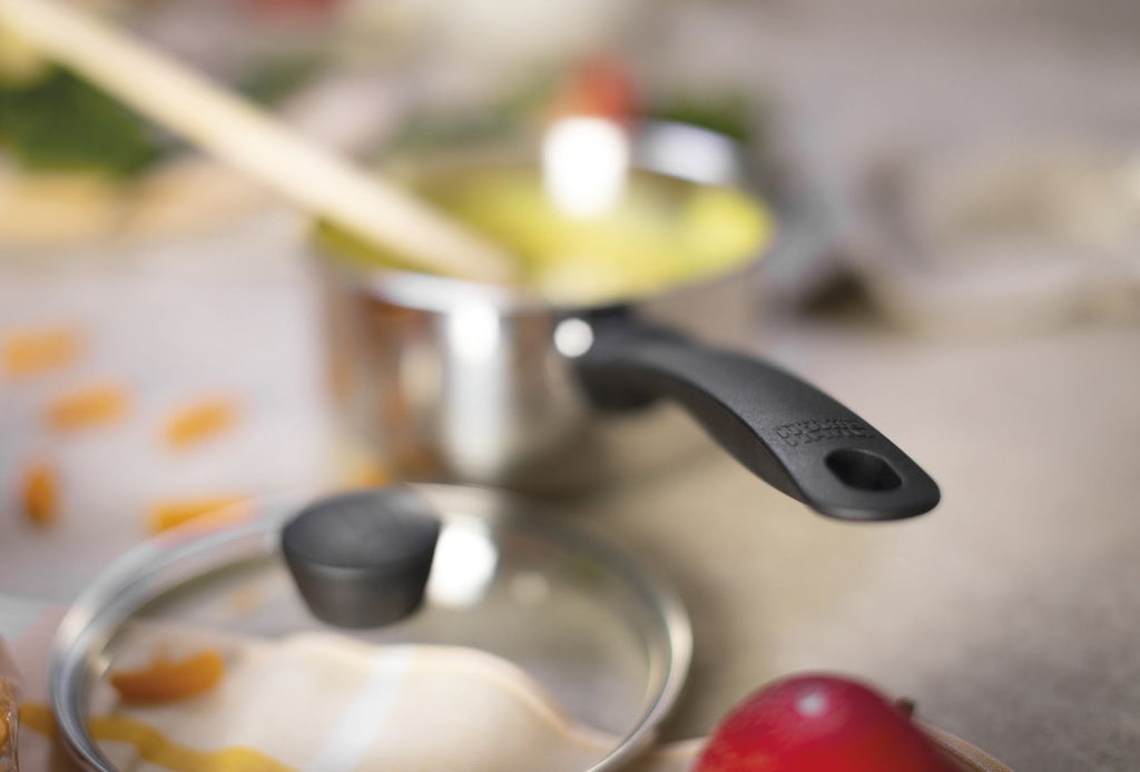 - Ergonomic handle will stay cool on the hob