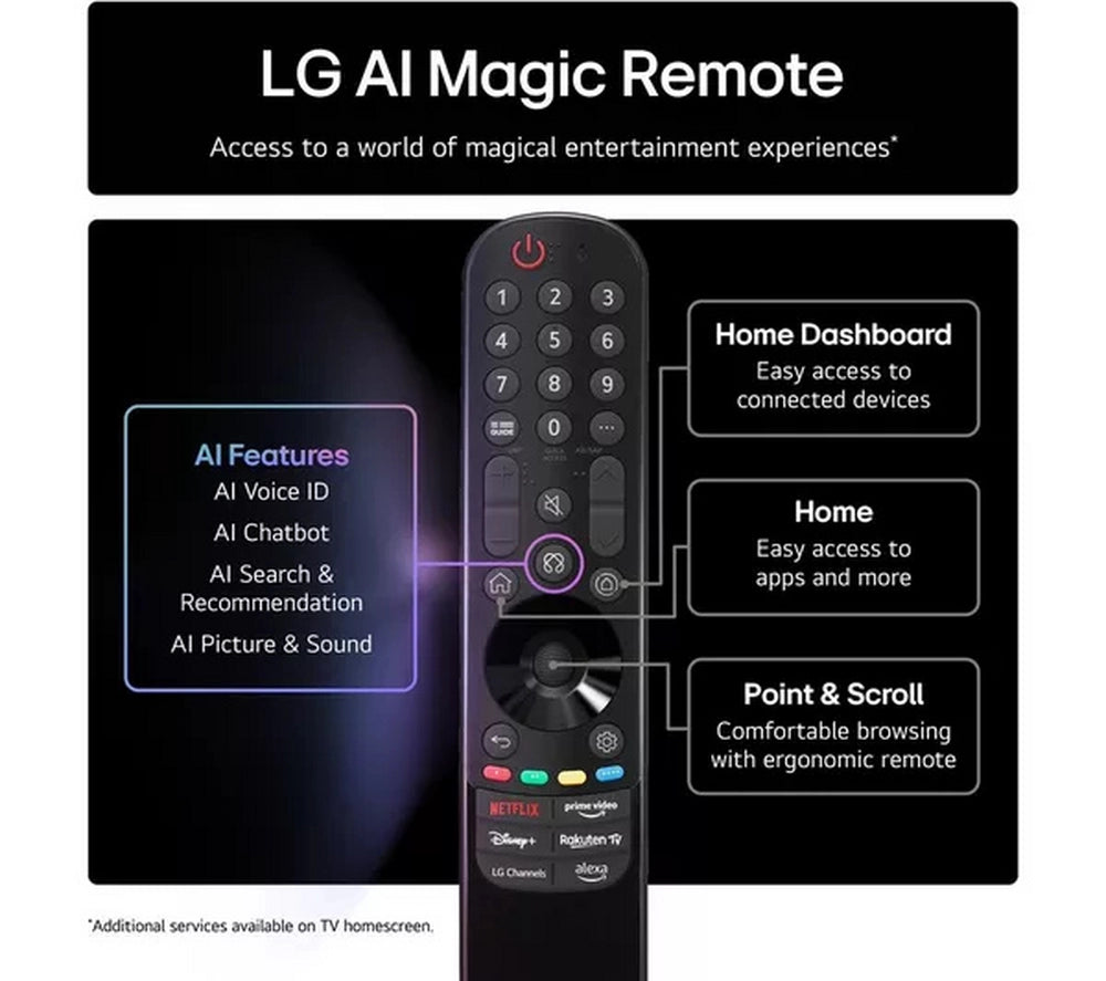 | Features | LG Nano Cell Smart processor with 4K Upscaling and more Smart WebOS Platform with AI Functionality Immersive cinema experience with Filmmaker Mode and HDR |