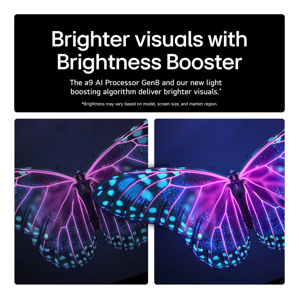 | Features | Advanced α9 - Smarter, faster TV Brightness Booster- Incredible brightness Perfect Black – Infinite contrast Smart webOS – All apps, all in one |