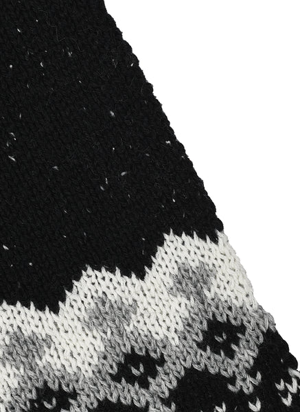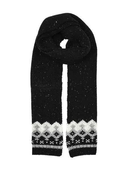 Marl Yarn Knit Scarf with A Fair Isle Jacquard Design Black