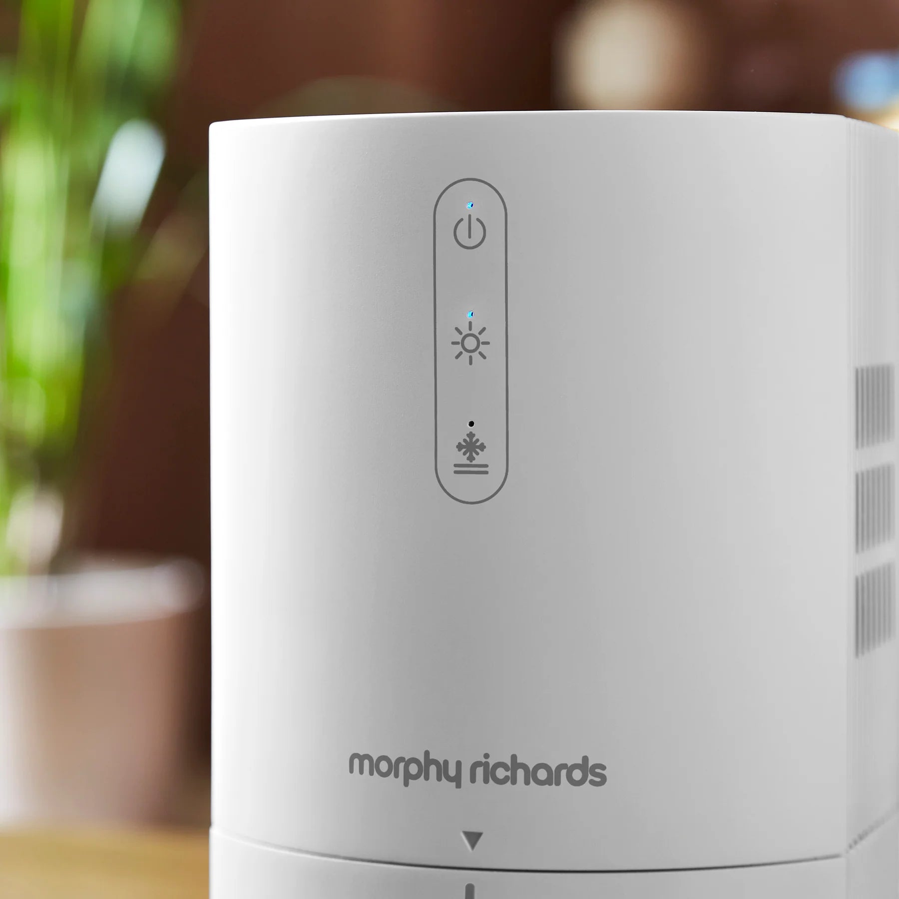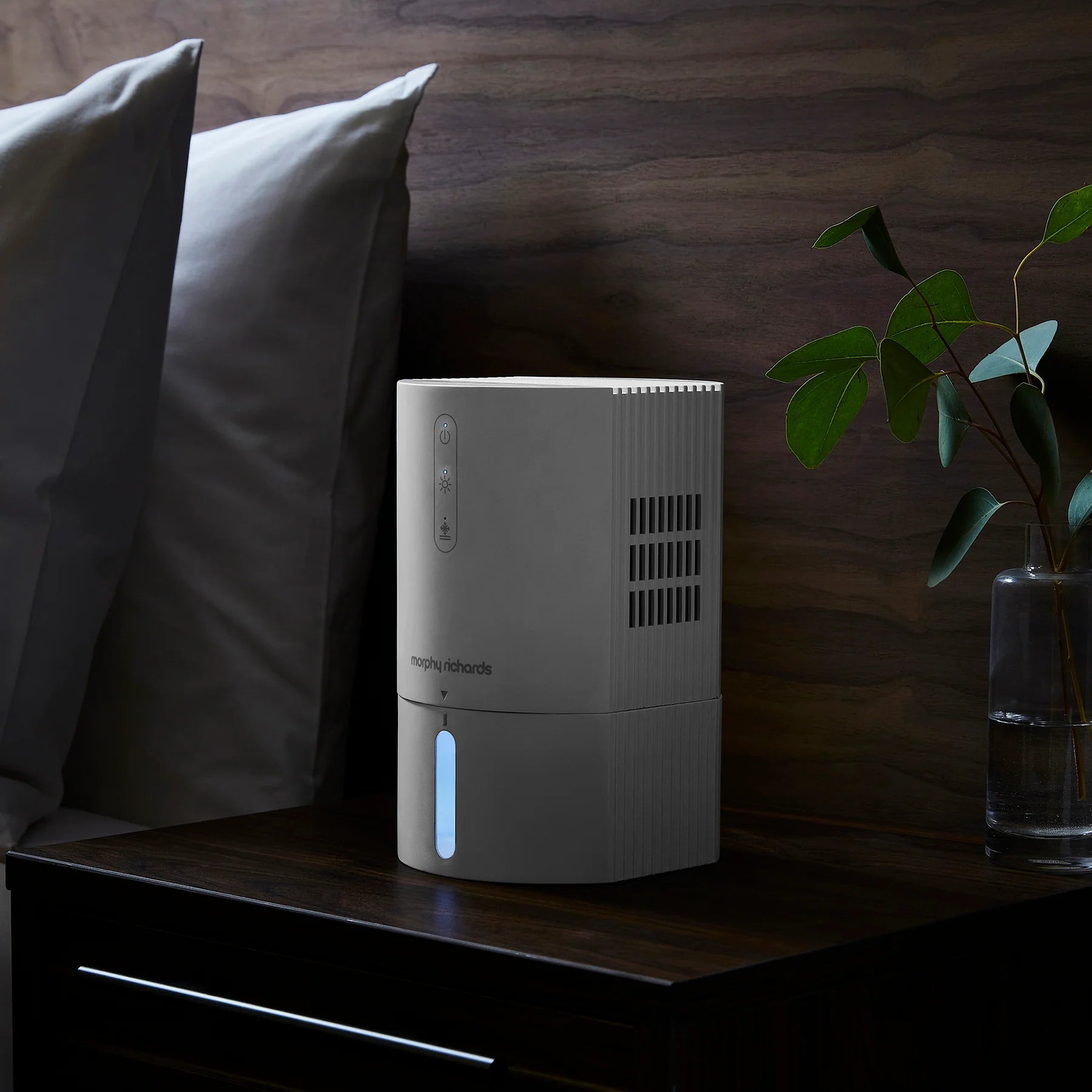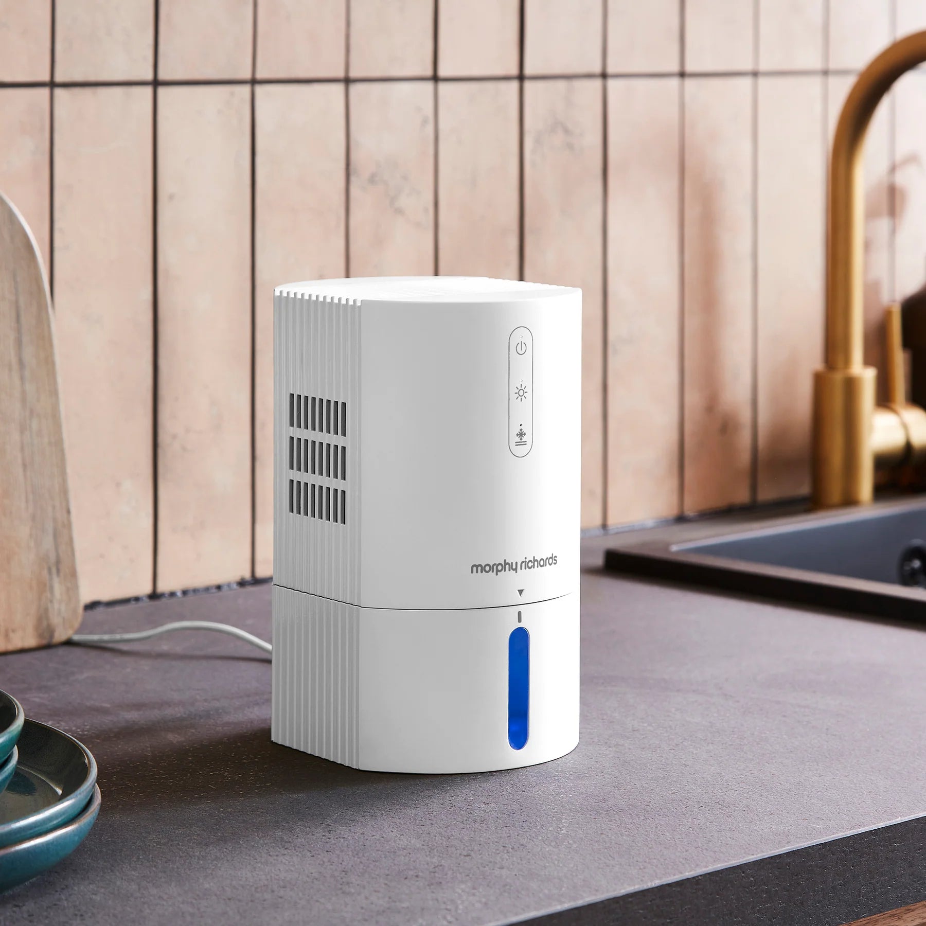 The Morphy Richards PureFresh 0.9L dehumidifier combines elegant design with intelligent functionality for compact spaces. Ideal for bedrooms, wardrobes, kitchens, and caravans, this portable unit tackles moisture effectively where it matters most. Ambient lighting creates a calming ambiance whilst automatic defrosting safeguards performance. A full tank indicator ensures convenient maintenance. Sophisticated engineering meets practical design in one of the market's finest compact dehumidifiers.