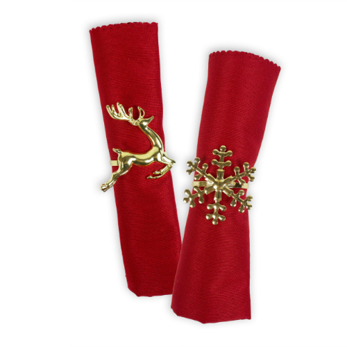 Set a memorable holiday table with this six-piece napkin ring collection, showcasing exquisite gold finishes paired with festive reindeer and snowflake motifs. Ideal for hosting larger gatherings, this set ensures coordinated elegance across your entire table. Each ring combines premium craftsmanship with seasonal charm, transforming ordinary napkins into striking focal points. Perfect for Christmas dinners, New Year celebrations, or winter entertaining, these versatile pieces work beautifully with both traditional and contemporary table décor. Impress your guests with sophisticated styling that reflects your attention to detail and festive spirit.