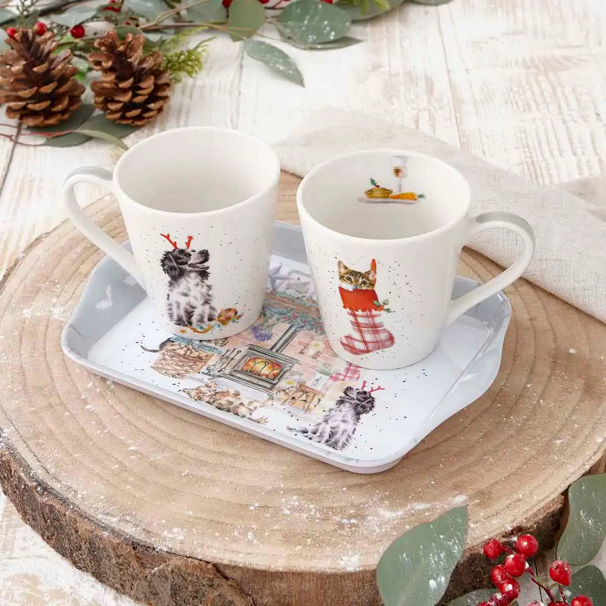 Celebrate the season with the Portmeirion No Place Like Home Mug & Tray Set, featuring charming Wrendale Designs illustrations of cosy animals enjoying festive comfort. This thoughtfully curated duo pairs two small porcelain mugs with a melamine tray, creating the perfect gift for sharing warm beverages and treats with loved ones. The durable tray keeps everything secure whilst the elegant mugs add a touch of seasonal warmth to your kitchen. Ideal for Christmas gatherings, quiet moments by the fire, or as a memorable present that captures the true spirit of home.
