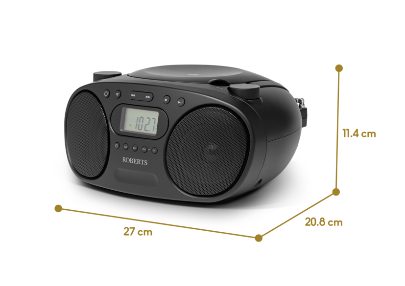 Experience the ultimate in portable radio and CD player technology with the sleek and intuitive Roberts Zoombox FM Black. Enjoy crystal-clear stereo sound through the dual speakers and personalize your listening experience with the headphone socket.