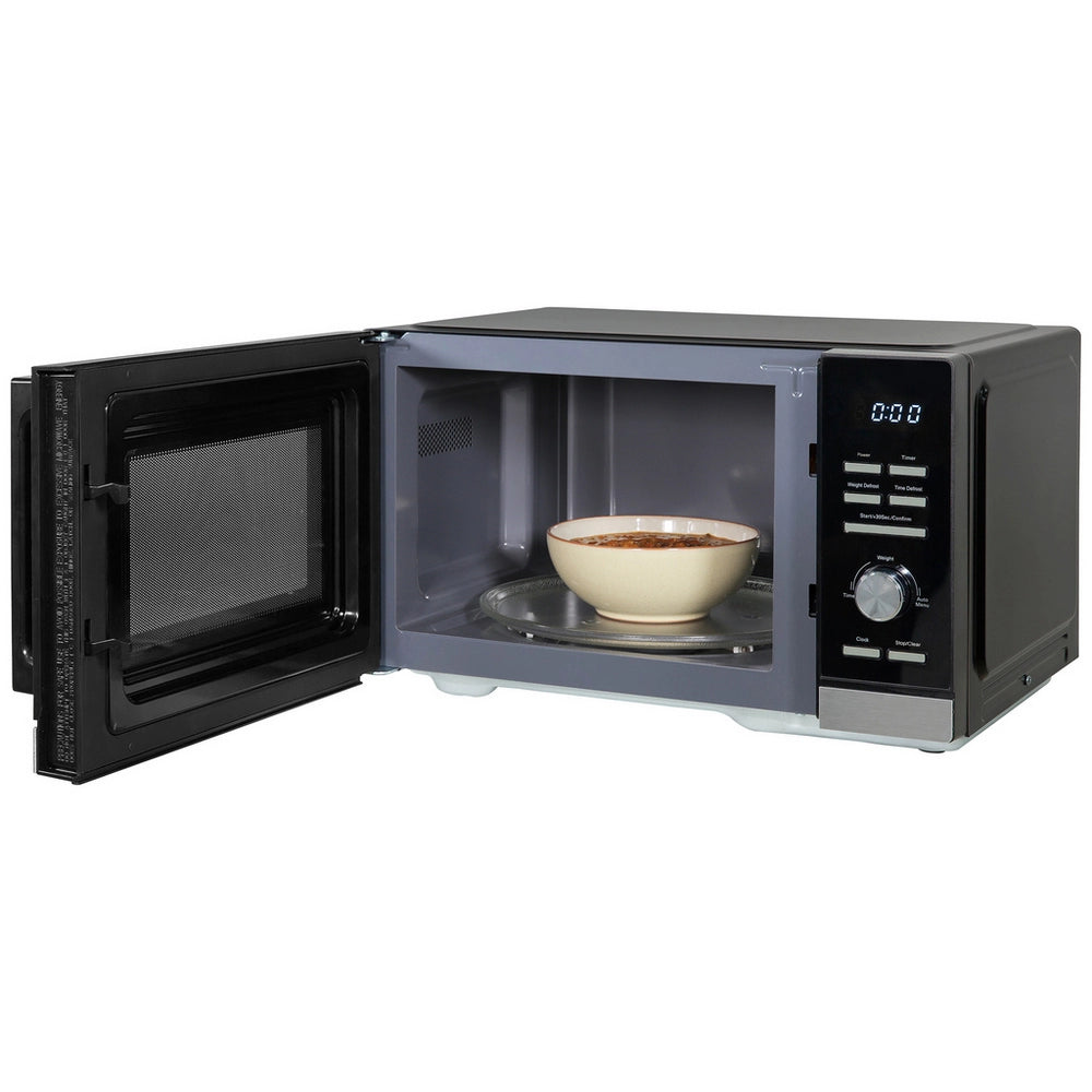 | Features | 900W power with 5 power levels & 8 auto-cook settings 95-minute timer Fits 12.5” plate Defrost setting & Mirror door finish |
