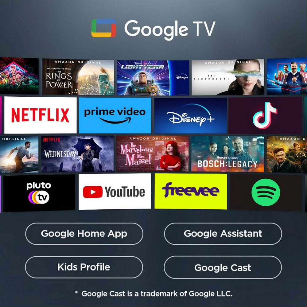 Features | 43" QLED Display – Immersive 4K HDR visuals Direct LED Technology – Bright scenes come alive Google TV Platform – Effortless app navigation Modern Design – Compliments any living space effortlessly |